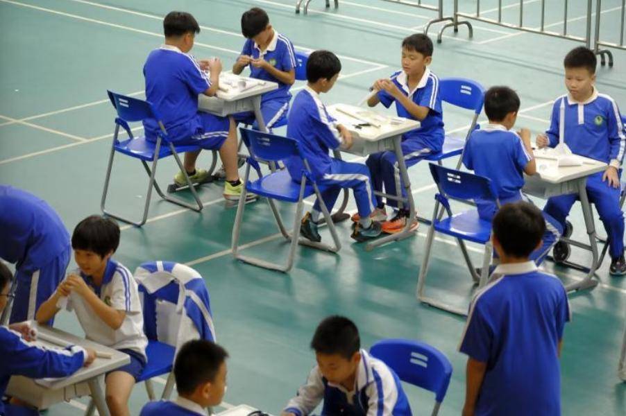 四至六年级竞赛率先开启。C210游戏空间内,彩色华容道大赛以1v1晋级赛形式展开,选手需按指定3×3颜色排序移动方块,比拼快速反应与逻辑思维,每班4名个人选手同台竞技;D区羽毛球馆的气弓箭制作竞技赛中,2人小组利用统一材料工具制作箭体,调节发射角与气压完成发射,团队协作能力尽显。