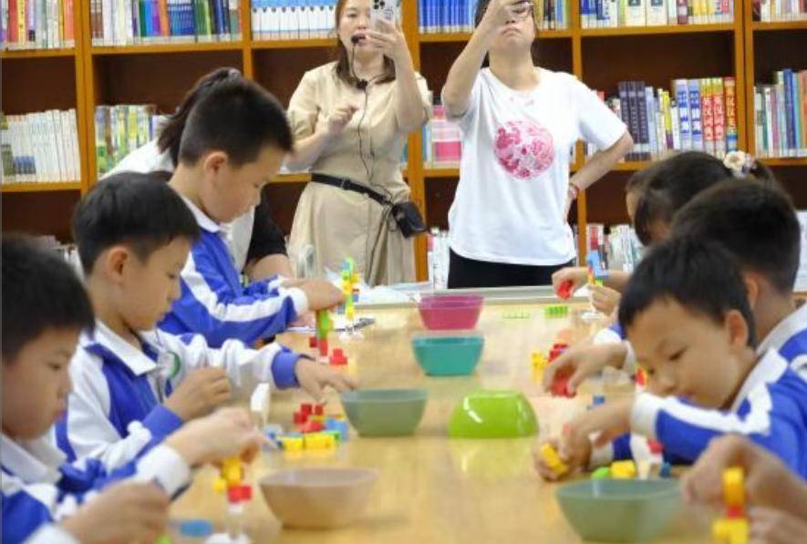 随后,一至三年级学子接力参赛。C区二楼图书馆的叠叠乐拼装赛上,选手在平衡木上叠加组件,以“平衡+速快”决胜负;C区一楼科创空间内,纸杯飞行器制作大赛要求15分钟内完成作品并参与穿环赛,选手们互助创作,创意十足。